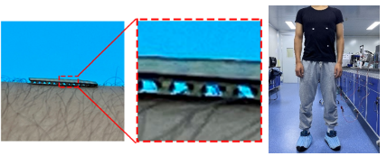 4. 仿“苍耳子”微结构电极/心电采集服装:倒钩结构具有较高的动摩擦系数,并可将毛发容纳在微结构内部,保证在动态采集过程中以及人体多毛部位信号采集的稳定性。应用于心电、肌电、脑电信号采集。