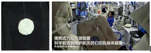 1. 混合刺绣工艺织物电极/便携式电刺激纺织品:加捻纯银丝纱线进行刺绣,高耐磨损,经氯化、硫醇处理,改善极化效应、增强耐汗液腐蚀性。应用于穴位电刺激,便携式电刺激纺织品是专为穴位电刺激设计的前沿技术产品,具有良好的耐久性能和舒适性。通过精准定位人体穴位,利用微电流脉冲技术,在短时间内有效缓解疲劳、促进血液循环、提升身体机能。该产品服务我国重大科技需求,已经提供给我国神十三、神十四、神十七、神十八航天员在轨使用。
