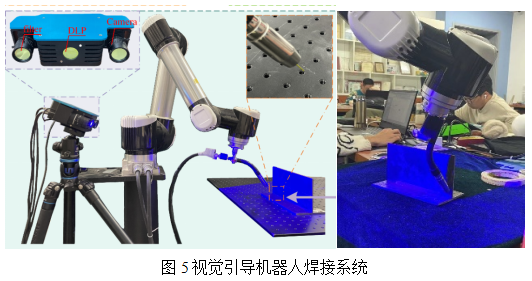 (5)激光视觉智能焊接机器人系统。激光视觉传感系统以“眼在手上”的方式安装在机器人的机械臂末端,用于获取工件点云。通过网络模型进行点云部件分割操作,得到焊缝区域点云信息,最后进行路径规划,将焊接路径信息发送给机器人进行自动焊接。